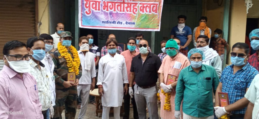 देवास-कोरोना वायरस कोविड 19 महामारी के कारण आज पूरे देश का जनजीवन अस्त व्यस्त चल रहा है। जहाँ एक और हम अपने भविष्य को लेकर चिंतित है। वही दूसरी और वर्तमान में इस महामारी से बचाने के लिए स्वास्थ,आंगनवाड़ी,पुलिस,डॉक्टर,सैनिक व पत्रकारों के रूप में कोरोना योद्धाओं की भूमिका निभा रहे सभी क्षेत्र हमारी रक्षा के लिए इस महामारी का डट के सामना कर रहे है। युवा भगतसिंह क्लब के सयोजक अशोक कहार ने बताया कि इन योद्धाओं का सम्मान कर हम क्लब के सभी सदस्य अपने आपको गौरवांवित महसूस कर रहे है।