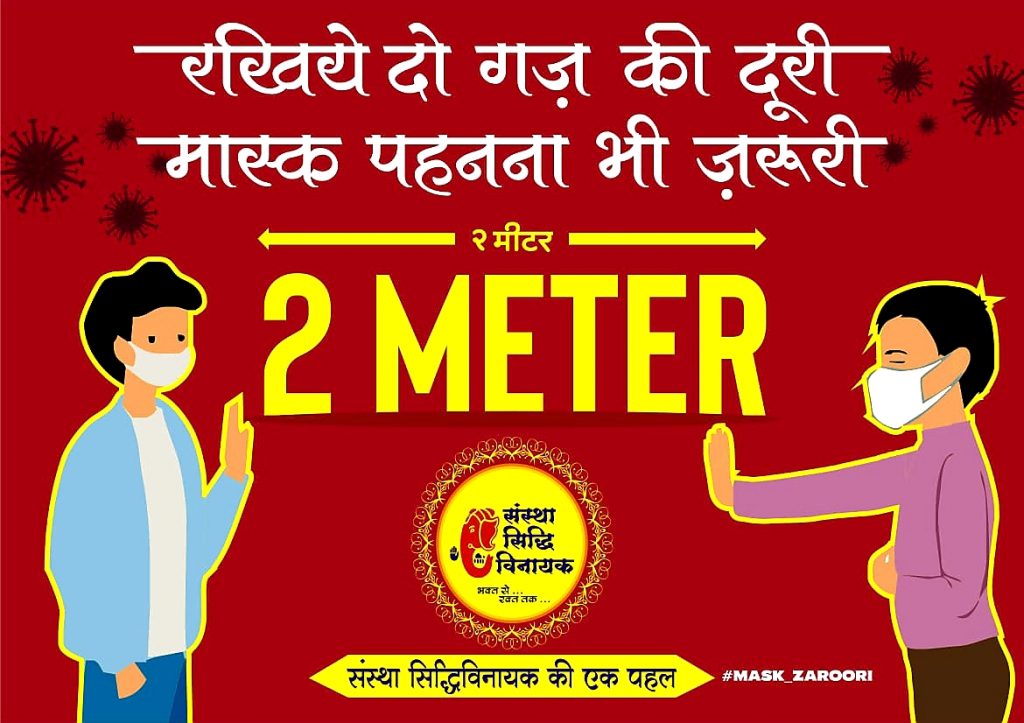13 जून को एबी रोड, एमजी रोड, सिविल लाइंस चौराहे पर कार्यक्रम होगा और मास्क वितरण कर मास्क डे भी मनाया जाएगा। संस्था सिद्धि विनायक के संयोजक रवि जैन ने बताया कि कोरोना संक्रमण से निपटने का सबसे कारगर तरीका यही है कि मास्क लगाएं, सोशल डिस्टेंसिंग का पालन करें और हाथों को नियमित अंतराल से साबुन अथवा सेनेटाइजर से धोते रहें। अब भी कई लोग इन नियमों का पालन नहीं कर रहे और संक्रमण की गंभीरता नहीं समझ रहे। इसके लिए संस्था ने जागरूकता जिम्मा उठाया है।