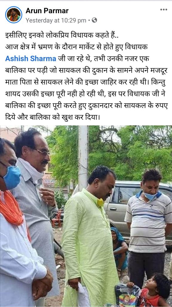 जो की यह सोशल मीडिया पर एक सकरात्मक पोस्ट तो है ही वही विधायक आशीष शर्मा की आम लोगो के प्रति अपनी निष्ठा ओर सहानुभूति भी दर्शाती है। अगर देश मे ऐसे सभी जनप्रतिनिधि हो जाये तो आज देश की दिशा ही बदल जाये।
