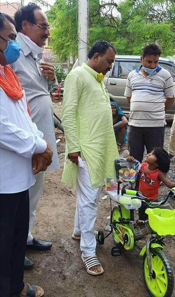देवास। सोशल मीडिया के चर्चित चेहरे अरुण परमार द्वारा एक पोस्ट डाली गई जिसमे यह बताया गया कि आज क्षेत्र में भ्रमण के दौरान मार्केट से होते हुए विधायक आशीष शर्मा जा रहे थे, तभी उनकी नजर एक बालिका पर पड़ी जो सायकल की दुकान के सामने अपने मजदूर माता पिता से सायकल लेने की इच्छा जाहिर कर रही थी। किन्तु शायद उसकी इच्छा पूरी नही हो रही थी, इस पर विधायक आशीष शर्मा ने बालिका की इच्छा पूरी करते हुए दुकानदार को सायकल के रुपए दिये और बालिका को खुश कर दिया।