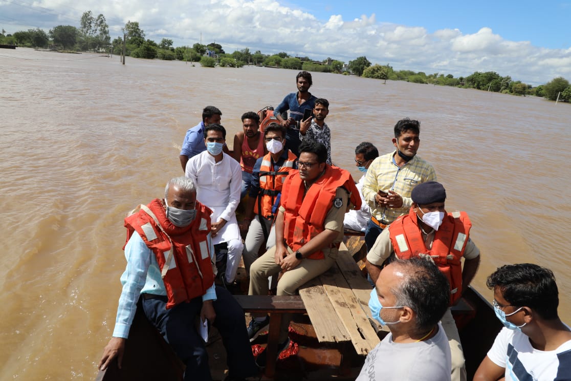 पुलिस अधीक्षक डॉ. सिंह ने नेमावर में एक व्यक्ति जिसे कमर में परेशानी थी उसकी रेस्क्यू कर मदद की तथा उसे नाव द्वारा सुरक्षित स्थान पर पहुंचाया।