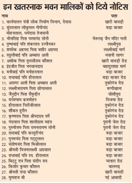 इन खतरनाक भवन मालिकों को दिये नोटिस
