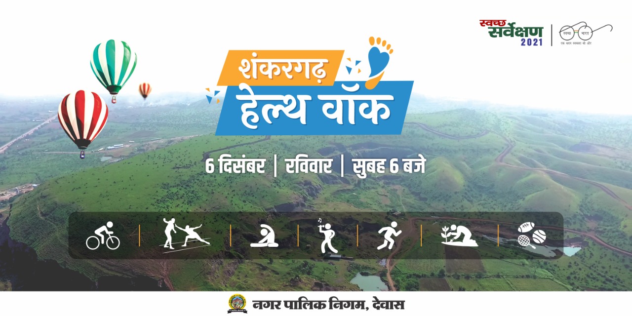 देवास 04 दिसम्बर 2020/ कलेक्टर चंद्रमौली शुक्ला के मार्गदर्शन में जिला प्रशासन एवं नगर निगम द्वारा इन्दौर-भोपाल बायपास पर स्थित शंकरगढ पहाडी को पर्यटन व सौंदर्यीकरण की दृष्टि से विकसित किया जा रहा है। इसके लिए स्वास्थ्य मनोरंजन की दृष्टि से 6 दिसम्बर (रविवार) को शंकरगढ पहाडी पर हेल्थवॉक एक्टीविटी का आयोजन किया गया है।