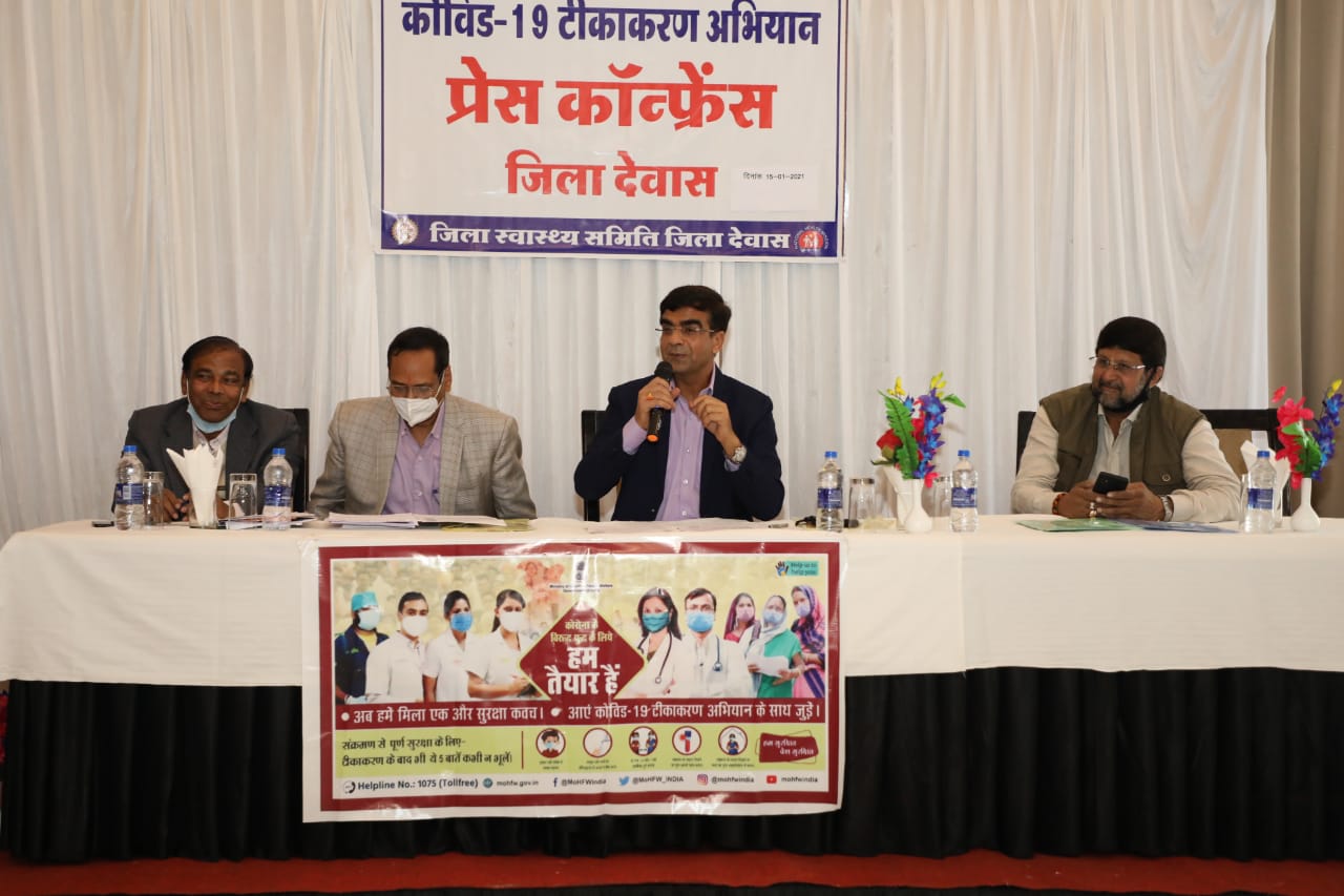 देवास, 15 जनवरी 2021/ कलेक्टर चन्द्रमौली शुक्ला ने कोरोना वायरस वैक्सीन टीकारकण के संबंध में पत्रकार वार्ता की। पत्रकार वार्ता में कलेक्टर शुक्ला ने वैक्सीनेशन कार्यक्रम के संबंध में जानकारी दी। कलेक्टर शुक्ला ने कहा कि दुनिया का सबसे बडा वैक्सीनेशन कार्यक्रम 16 जनवरी से शुरू होगा। हम सौभाग्यशाली है कि देवास जिला प्रथम चरण में शामिल हुआ है। हम सभी की जवाबदारी है कि इससे अच्छे से संचालित करें। देवास जिले में सभी चिकित्सकों, नोडल अधिकारियों तथा जोनल अधिकारियों को वैक्सीनेशन के संबंध में प्रशिक्षण दिया गया है। वैक्सीनेशन के संबंध में आवश्यक जानकारी के लिए कंट्रोल रूम भी बनाया गया है। कंट्रोल रूम का नंबर 07272-222202 और मोबाइल नंबर 9406632089 है।