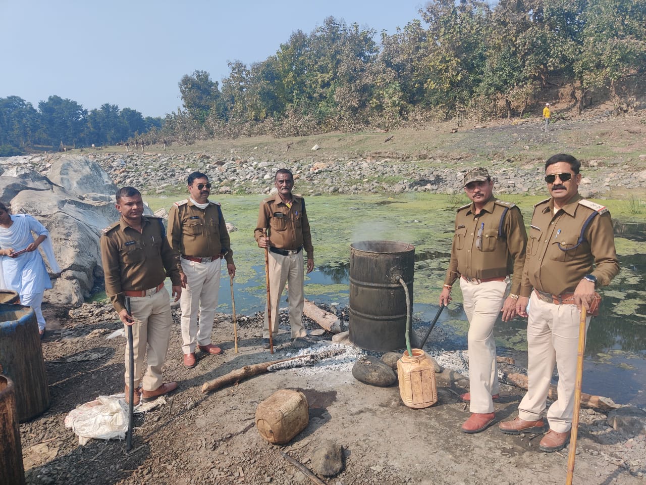 01 मोटरसाइकिल सहित 150 लीटर अवैध हाथभट्टी मदिरा, 50 पाव देशी मदिरा प्लेन ,12 बोतल बियर जप्त तथा लगभग 16 हजार लीटर महुआ लहान जप्त कर विधिवत नष्ट किया