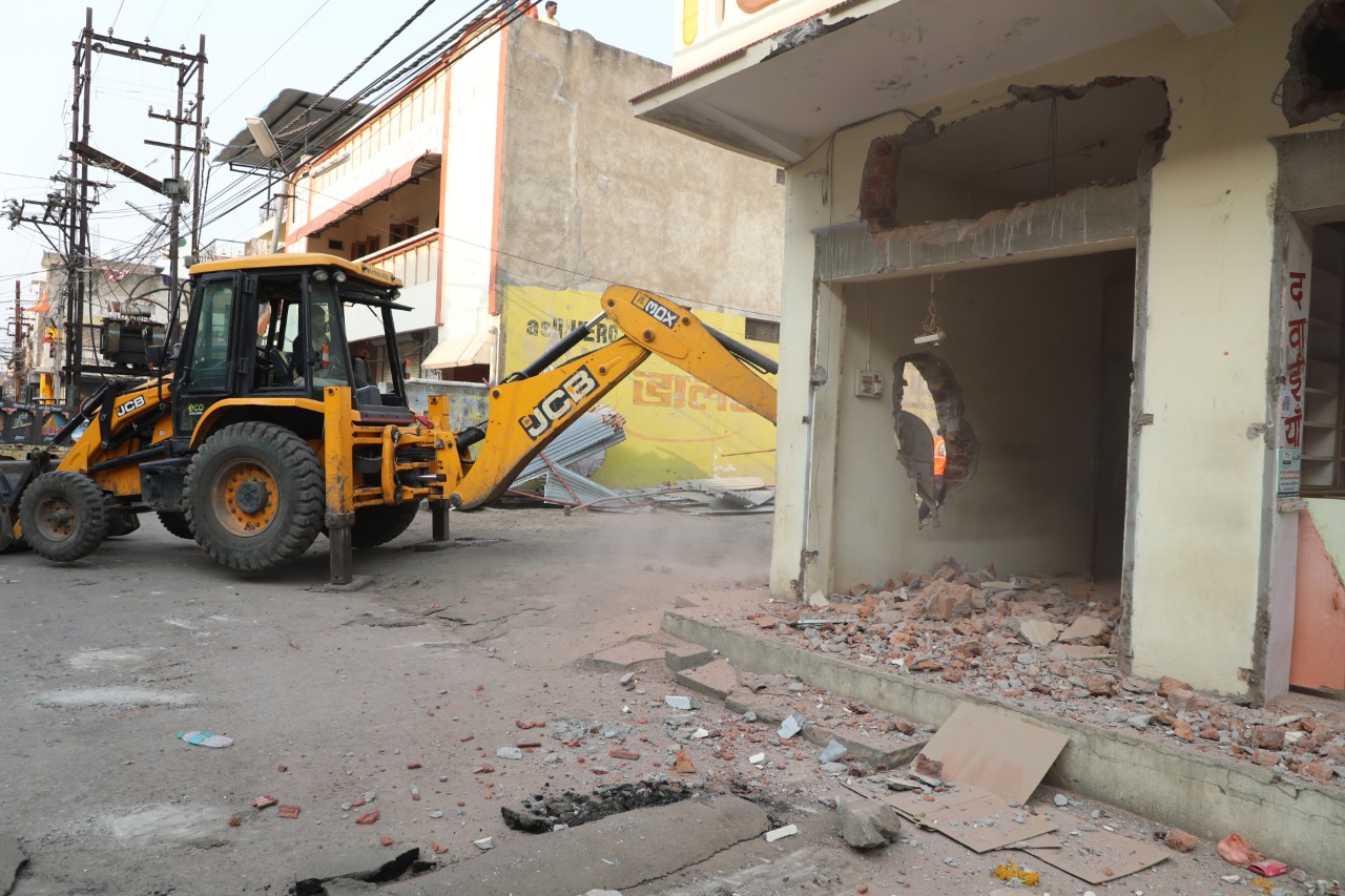 देवास जिले में जिला प्रशासन, पुलिस प्रशासन एवं नगर निगम की संयुक्‍त टीम ने शहर में शिवा चौधरी के नजूल की भूमि पर अवैध रूप से निर्मित मकान और प्‍लाट पर बने शेड को तोडने की कार्रवाई की