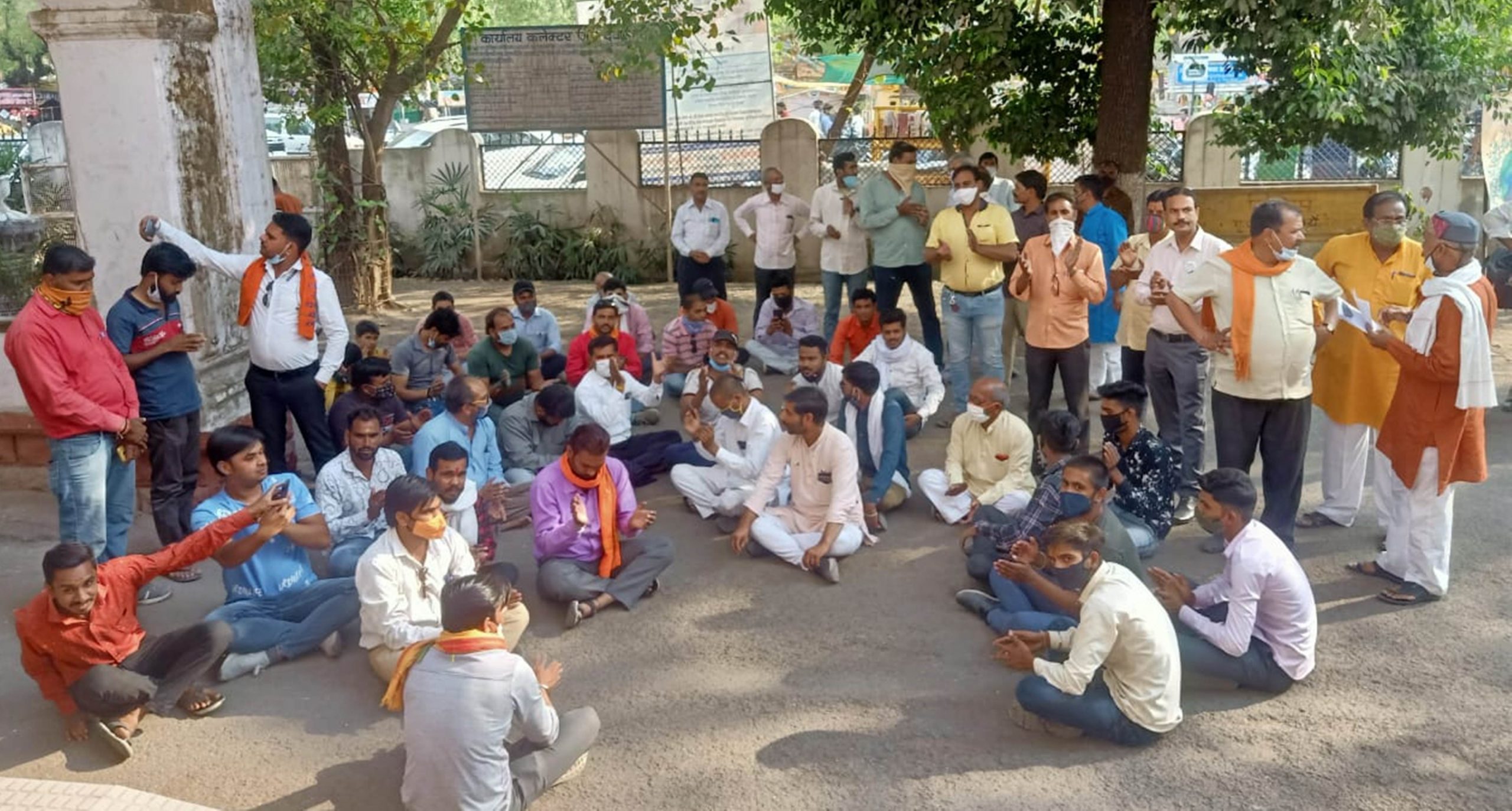 -भजन, हनुमान चालीसा करते कार्यालय का किया घेराव, निंदा प्रस्ताव रखा, नेम प्लेट पर चस्पा किया ज्ञापन