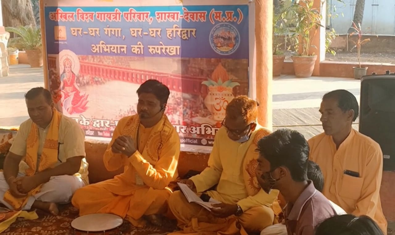 देवास । अखिल विश्व गायत्री परिवार शांतिकुंज हरिद्वार की शाखा देवास द्वारा निरंतर आपके द्वार पहुंचा हरिद्वार अभियान के तहत गली गली, मोहल्ले मोहल्ले एवं गांव गांव में हरिद्वार कुंभ का गंगा जल बड़ी श्रद्धा से गायत्री परिवार द्वारा पहुंचाया जाकर देव परिवार का गठन किया जा है। गायत्री शक्तिपीठ के मीडिया प्रभारी विक्रमसिंह चौधरी ने बताया कि गायत्री शक्तिपीठ एवं गायत्री प्रज्ञापीठ की टीम द्वारा जवाहर नगर साईं मंदिर, ईशपदम मार्केट, अलकापुरी एवं गजरा गियर्स चौराहा पर 85 घरों में मां गंगा एवं मां गायत्री की स्थापना कर देव परिवार का गठन बड़ी श्रद्धा एवं उत्साह से किया गया ।