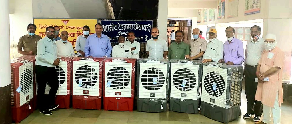 देवास। भारतीय रेडक्रास सोसायटी शाखा ने रविवार को महात्मा ग़ांधी जिला चिकित्सालय में गर्मी को देखते हुवे 8 कूलर और पंखे भेंट किए। मरीजों को इस गर्मी और कोरोना काल मे काफी राहत मिलेगी। इस अवसर पर एसडीएम प्रदीप सोनी, रेडक्रॉस सचिव डॉ. केके धूत, मुख्य चिकित्सा स्वास्थ्य अधिकारी डॉ. एमपी शर्मा, सिविल सर्जन डॉ. विडवाई, आरएमओ गोसर साब, डॉ. योगेश वालिम्बे, डॉ आरसी शर्मा, डॉ मूंदड़ा सर, एमके नागर, आर सी शर्मा, रमेश चंद पालीवाल, दीपक सिंह राठौड़, गिरिराज सिंह चौहान सहित सभी जिला चिकित्सालय के पदाधिकारी और भारतीय रेडक्रॉस सोसायटी के पदाधिकारी उपस्थित थे। उक्त जानकारी पीआरओ जयसिंह सेंधव ने दी।