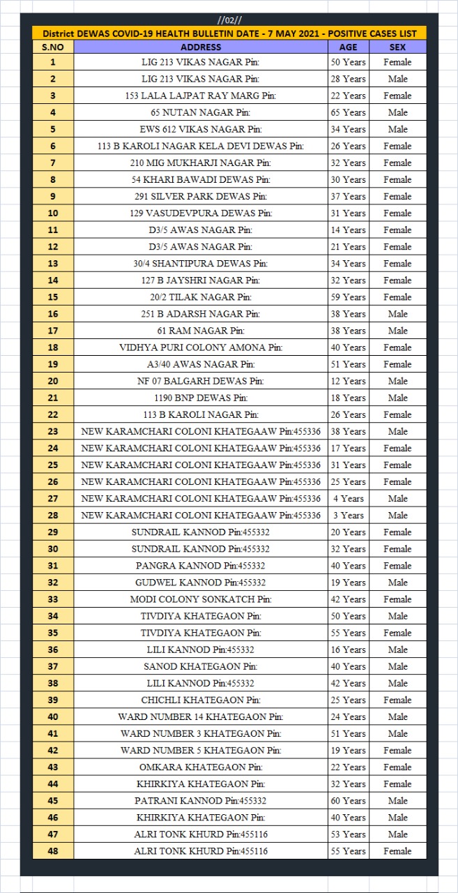 ◆ आज प्राप्त रिपोर्ट मे कोरोना संक्रमित (पाजिटिव) केसेस जानकारीः-संलग्न सूची-