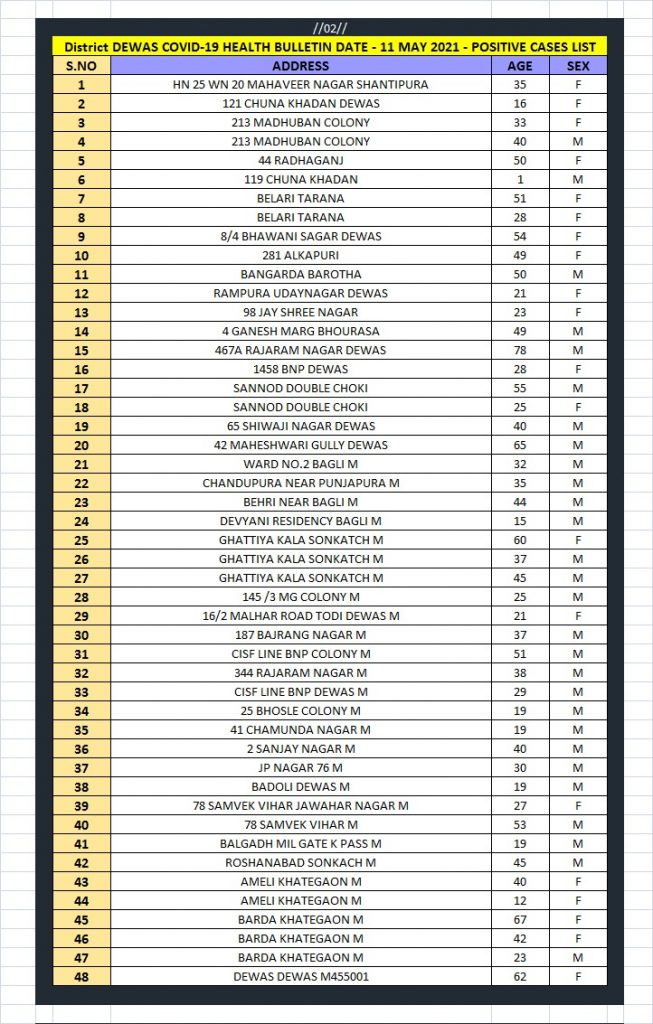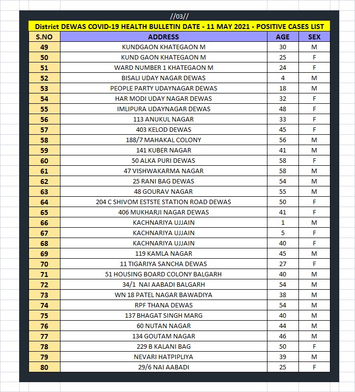 ◆ आज प्राप्‍त रिपोर्ट मे कोरोना संक्रमित (पाजिटिव) केसेस जानकारीः-संलग्न सूची-