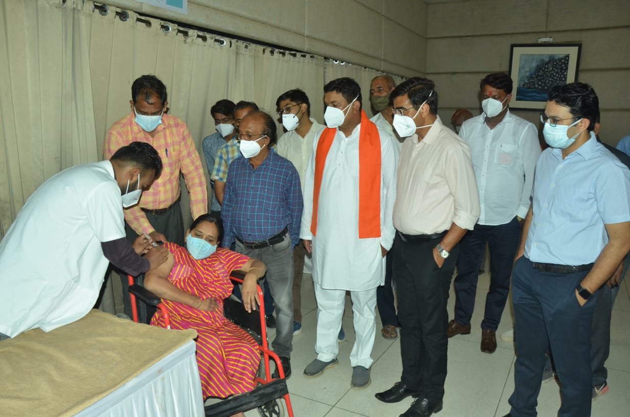 वैक्सीनेशन महाअभियान में मंगलवार को दिव्यांग अमिता जैन ने उत्साह से लगवाया टीका
