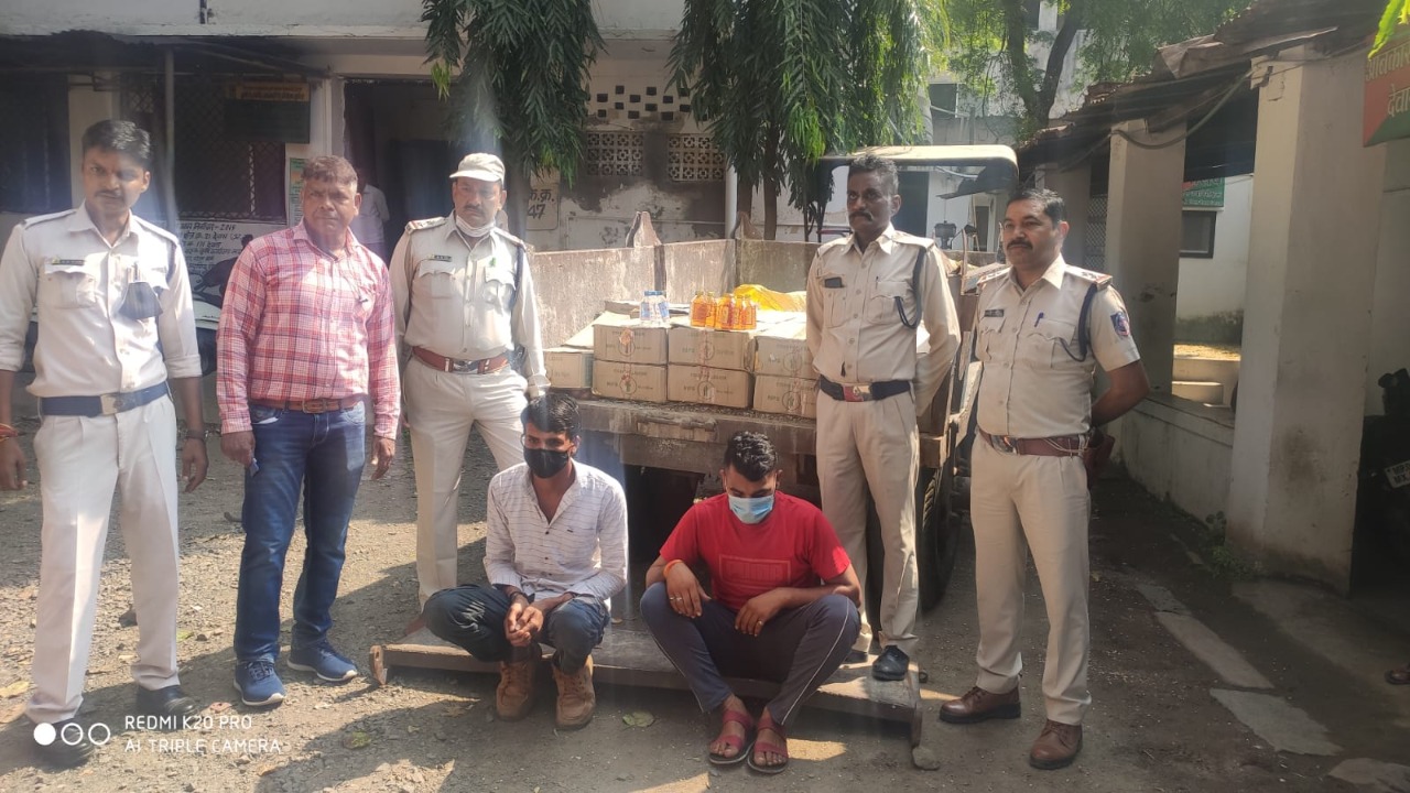 02 आरोपी को किया मदिरा एवं ट्रेक्टर ट्रॉली सहित गिरफ्तार जप्त मदिरा एवं वाहन की कीमत लगभग 4 लाख 30 हजार रुपए