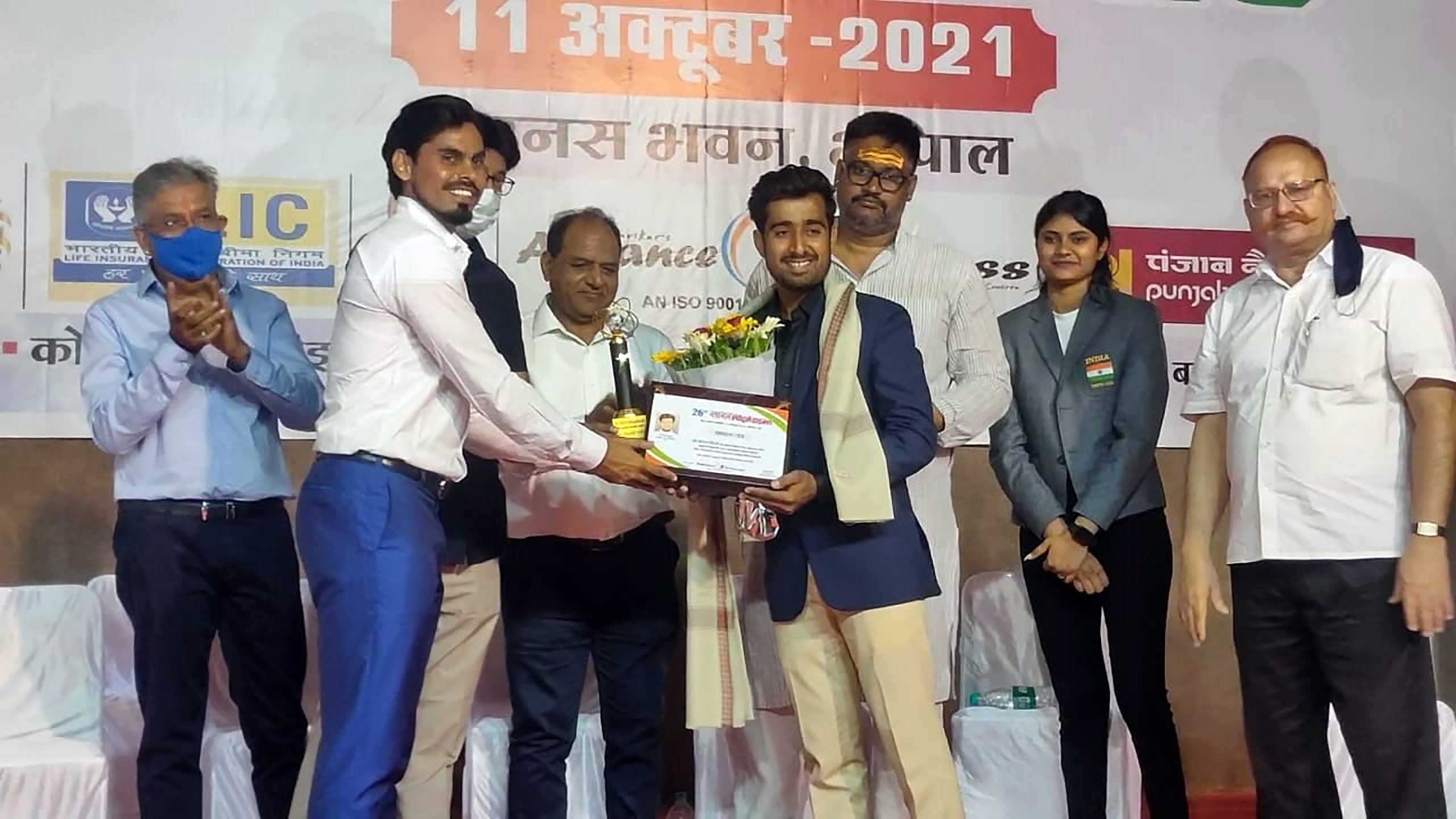 देवास। मध्यप्रदेश सॉफ्टटेनिस संघ के सचिव सुदेश सांगते ने बताया कि देश की लोकप्रियता मासिक हिन्दी पत्रिका नेशनल स्पोर्ट्स टाईम्स के प्रधान संपादक एवं मुख्य आयोजक इंद्रजीत मौर्य द्वारा आयोजित 26 वे अवार्ड समारोह 11 अक्टूबर को मानस भवन सभागृह पॉलिटेक्निक चौराहा भोपाल में देवास के सॉफ्टटेनिस के अंतर्राष्ट्रीय खिलाड़ी योगेश चौधरी को विधायक एवं पूर्व विधानसभा अध्यक्ष पी सी शर्मा विधायक भोपाल, ए एस सिंह एस पी जी गु्रप भोपाल, जलालुद्दीन रिजवी अर्जुन अवार्डी हॉकी, अंकित शर्मा ओलंपियन एथेलेटिक्स, प्रशांत कुशवाह, महासचिव भारतीय कयाकिंग एवं केनोइंग संघ, राजेन्द्र राहुरीकर डायरेक्टर एडवांस फिटनेस भोपाल के आतिथ्य में एवं खिलाड़ी अतिथि के रूप में रुबीना फ्रांसिस पैराओलंपिक शूटिंग खिलाड़ी की उपस्थिति में स्मृति चिन्ह एवं सम्मान पत्र प्रदान कर सम्मानित किया। योगेश के सम्मानित होने पर गौरी सिंह अध्यक्ष मध्यप्रदेश सॉफ्टटेनिस संघ,राधेश्याम सोलंकी रायसिंह सेंधव,गौरव कदम, दशरथ मंडलोई, श्रीकांत उपाध्याय, प्रयास गौतम,श्रीमती संतोष परिहार,प्रवीण सांगते,एस एन नामदेव, मनीष जायसवाल,विजय वर्मा, सुनील चौधरी, विपुल चौहान आदि बधाई दी।