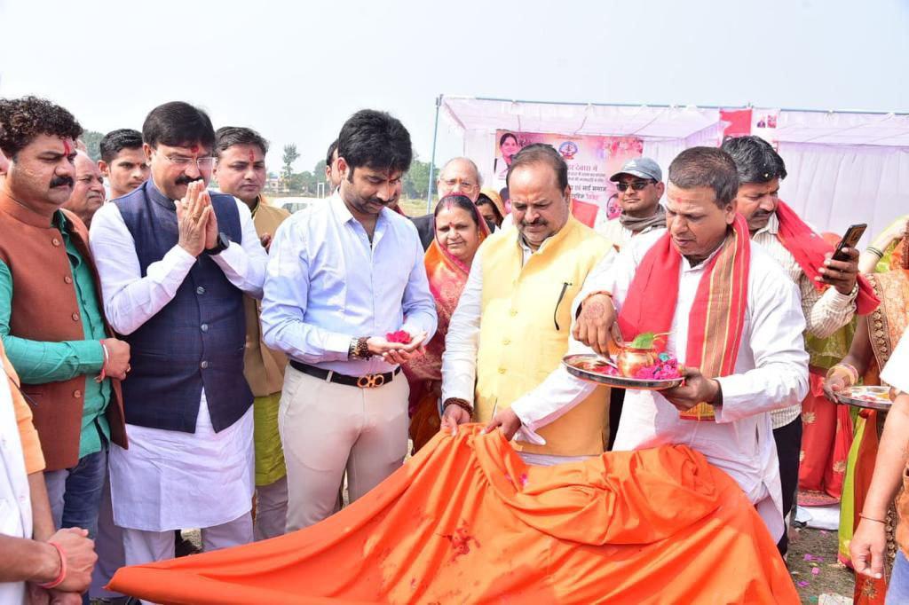 जया किशोरी जी की जनवरी माह में होने वाली भागवत कथा स्थली पर वैदिक पद्धति से 11 जोड़ों ने किया ध्वज एवं भूमि पूजन