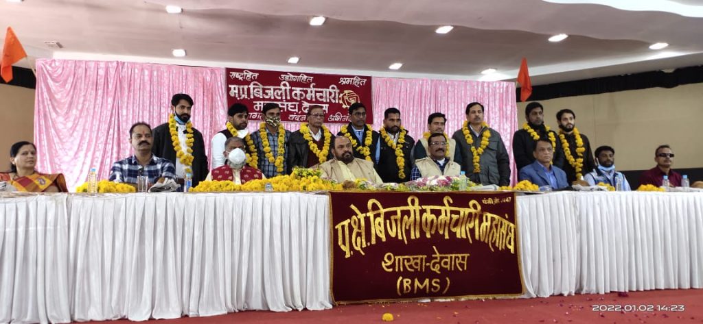 देवास। पश्चिम क्षेत्र बिजली कर्मचारी महासंघ देवास के क्षेत्रीय सचिव भगवान स्वरूप श्रीवास्तव ने बताया कि 02 जनवरी को राजमाता श्रीमंत गायत्री राजे पवार विधायक देवास एवं म.प्र. कर्मचारी महासंघ के प्रदेश महामंत्री सुशील कुमार पाण्डेय की उपस्थिति में प. क्षे. बिजली कर्मचारी महासंघ देवास का कार्यकर्ता सम्मेलन एवं जिला तथा संभाग की नवीन कार्यकारिणी का गठन का कार्यक्रम सृष्टी क्लब देवास में संपन्न हुआ। इस अवसर पर मातृ संगठन राष्ट्रीय स्वयं सेवक संघ के प्रांत प्रचार प्रमुख विनय दीक्षित उपस्थित थे। उन्होने संघ के 75 वां स्वराज प्राप्त वर्ष को अमृत महोत्सव के रूप में मनाने से संबंधित अपने विचार प्रस्तुत किये। कार्यक्रम की अध्यक्षता वर्षा खानविलकर ने किया अन्य अतिथिगणों में अशोक कुमार राठौर महामंत्री प.क्षे. महासंघ, एल.एन. यादव , विष्णु वर्मा, दुर्गेश अग्रवाल, भरत चौधरी, धर्मेन्द्रसिंह बैस, गणेश पटेल, हरिश ठोमरे , पवन प्रजापति, अनिल सिकरवार पूर्व अध्यक्ष प्रेस क्लब, राजेश पटेल आदि उपस्थित थे। वृत्त के जिला निर्वाचन एवं उपसंभाग निर्वाचन हेतु प्रदेश महामंत्री पाण्डेय द्वारा पहले पूर्व के अध्यक्ष वीरेन्द्र बुन्देला द्वारा पूर्व कार्यकारिणी को भंग किया गया एवं अशोक कुमार राठौर महामंत्री प.क्षे. महासंघ को निर्वाचन हेतु मनोनीत किया गया उन्होने पदाधिकारियों का निर्वाचन किया जिसमें क्षेत्रीय अध्यक्ष एस. पीरिया स्वामी, क्षेत्रीय सचिव भगवान स्वरूप श्रीवास्तव एवं अन्य पदाधिकारी शहर संभाग के अध्यक्ष निलेश पाण्डेय, सचिव कैलाश चौधरी, संचा/संधा संभाग देवास के अध्यक्ष भारतसिंह पिछोलिया, सचिव प्रकाश चैरसिया, सोनकच्छ संभाग के अध्यक्ष सुमित रेकवार, सचिव लखन चौहान, कन्नौद संभाग के अध्यक्ष प्रदीप मालवीय, सचिव रेवाराम पवार, बागली संभाग के अध्यक्ष रघुवीर मीणा, सचिव लोकेश जोशी। इस अवसर पर सभी कार्यकर्ता उपस्थित थे। कार्यक्रम का संचालन प्रकाश चौरसिया ने किया । कार्यक्रम में निष्कर्ष निवारिया प्रांतीय कार्यालय मंत्री, राजेश पटेल कार्यकारी अध्यक्ष, राकेश देवड़े मीडिया प्रभारी, नीरज प्रजापति, नितिन अग्रवाल, गौरव श्रीवास, मुकेश परमार, सुबोध गंगराडे, महेश शर्मा, महेश जमोडिया, स्वतंत्र ठाकुर, सुनिल प्रजापति, विनोद बिलावकिया, रामकिशोर वार्टी, संदीप सुनानिया, रामदेव जाट, वासुदेव डोंगरे, महिला प्रतिनिधि में ललिता देशमुख, सरिता सिसौदिया, साक्षी शिंदे आदि उपस्थित थे।