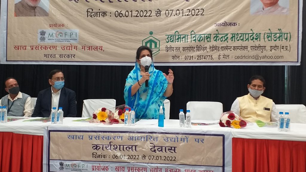 देवास 06 जनवरी 2022/ देवास जिले के स्थानीय उद्यमी/युवाओं के लिए खाद्य प्रसंस्करण आधारित उद्योगो पर दो दिवसीय कार्यशाला का आयोजन का शुभारम्भ होटल रामाश्रय देवास में हुआ। दो दिवसीय कार्यशाला में स्थानीय उद्यमी/युवाओं को विषय विशेषज्ञो द्वारा खाद्य प्रसंस्करण उद्योग की जानकारी एवं मार्गदर्शन दिया। कार्यशाला में आज प्रथम दिन लगभग 160 स्थानीय उद्यमी/युवा शामिल हुए। खाद्य प्रसंस्करण आधारित उद्योगो पर स्थानीय उद्यमी/युवाओं को नि:शुल्क प्रशिक्षण 07 जनवरी को भी दिया जायेगा। इस तरह की कार्यशाला प्रदेश में सिर्फ देवास और जबलपुर में आयोजित हो रही है।