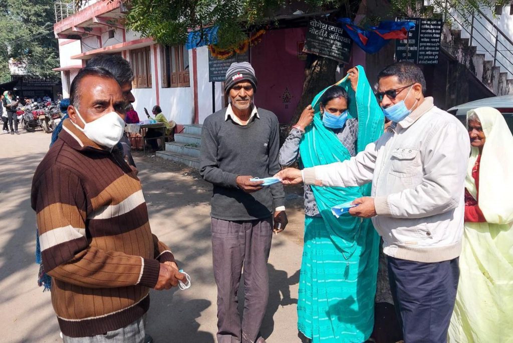स्वामी विवेकानंद जी की प्रतिमा पर माल्यार्पण कर मास्क वितरित किए