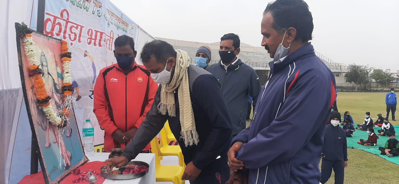 देवास। स्वराज अमृत महोत्सव के नियमित सूर्य नमस्कार सप्ताह का समापन समारोह 23 जनवरी को कुशाभाऊ ठाकरे खेल परिसर पर क्रीड़ा भारती देवास के तत्ववधान में आयोजित हुआ। जिसमें विभिन्न खेल संगठनों के लगभग 500 खिलाडिय़ों ने भाग लिया। सर्वप्रथम अतिथियों द्वारा भारतमाता की पूजा कि गई। तत्पश्चात धीरज पंवार द्वारा अतिथि परिचय दिया गया। मुख्य अतिथि दिनेश तेजरा देवास विभाग प्रचारक, ओमप्रकाश सिंह जगावत जिला संयोजक अमृत महोत्सव , सुदेश सांगते सह संयोजक अमृत महोत्सव एवं अनिल श्रीवास्तव मंचासीन रहे।
