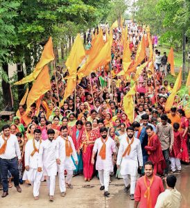 देवास। भारत भर में प्रसिद्ध माँ चामुण्डा-माँ तुलजा के प्रति अटूट आस्था एवं विश्वास के प्रति परिक्रमा में अभूतपूर्व आस्था उमड़ी। गुप्त नवरात्रि के उपलक्ष्य में माँ चामुण्डा माँ तुलजा भवानी भक्त मंडल द्वारा रविवार को भावपूर्ण प्रतिकात्मक पर्वत परिक्रमा की गई। मंडल के प्रमुख दुर्गेश अग्रवाल की अगुवाई में निकली पर्वत परिक्रमा में बड़ी संख्या में श्रद्धालुओं ने भाग लिया। इस अवसर पर महापौर प्रत्याशी गीता अग्रवाल संपूर्ण परिक्रमा में उपस्थित रही। परिक्रमा में केशरिया पताका थामे माँ के जयकारे लगाते हुए श्रद्धालु उत्साह के साथ चल रहे थे। भक्तों की आस्था चरम पर थी। पुरूषों के साथ बड़ी संख्या में मातृशक्ति एवं बच्चों ने भी उपस्थित होकर माँ के गगनभेदी जयकारे लगाए। भजनों की धुन पर नौजवान, नवयुवतियां एवं मातृशक्ति जमकर थिरकी।