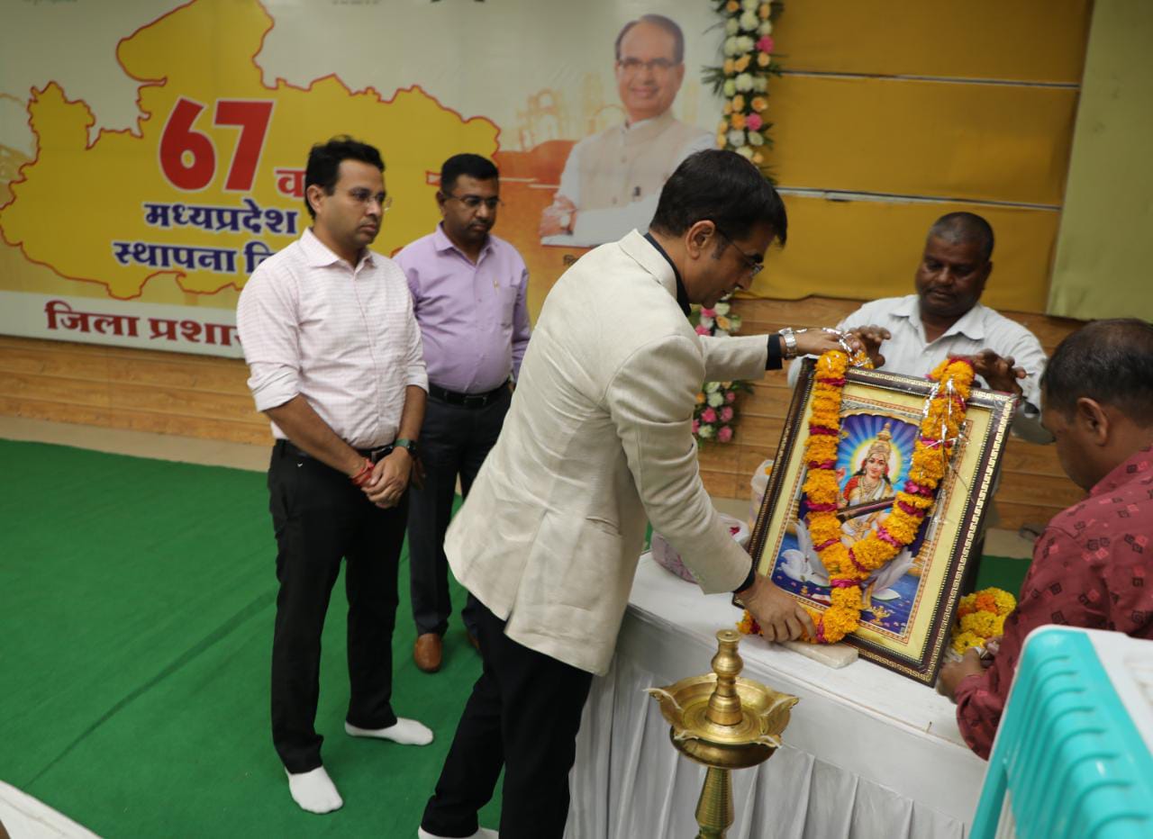 देवास 01 नवंबर 2022/ मध्‍य प्रदेश स्थापना दिवस पर मल्‍हार स्‍मृति मंदिर देवास में सांस्कृतिक कार्यक्रम आयोजित हुए। कार्यक्रम का शुभारंभ कलेक्टर चंद्रमौली शुक्ला ने सरस्वती पूजन कर किया। कार्यक्रम में लोक गीत गायक मानसिंह भोंदिया ने सरस्वती वंदना और मध्यप्रदेश गान का गायन किया। कवितालय अकादमी की बच्चीयों ने दुर्गा स्रुति, नर्मदा स्रुति एवं शिव तांडव की प्रस्तुति दी। कवितालय अकादमी की बच्चीयों ने सांस्कृतिक प्रस्तुतियां दी। सहायक संचालक शिक्षा अजय सोलंकी ने गायन की प्रस्तुति दी।