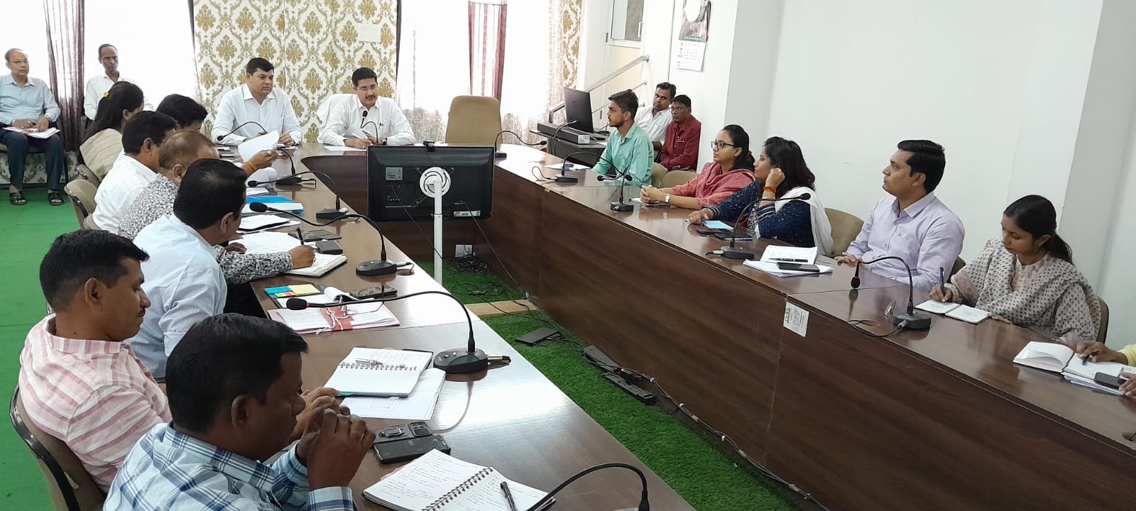 देवास 12 जून 2023/ समय-सीमा संबंधी लंबित पत्रों के निराकरण की प्रगति तथा अंतरविभागीय समन्वय से संबंधित मामलों की समीक्षा बैठक कलेक्टर श्री ऋषव गुप्ता की अध्यक्षता में कलेक्टर कार्यालय सभाकक्ष में संपन्न हुई। बैठक में अपर कलेक्टर श्री महेन्द्र सिहं कवचे, संयुक्त कलेक्टर श्रीमती शिवानी तरेटिया, संयुक्त कलेक्टर श्रीमती प्रियंका मिमरोट, डिप्टी कलेक्टर आनंद मालवीया सहित अन्य विभागों के जिला अधिकारी उपस्थित थे। समय-सीमा बैठक में विकासखण्ड स्तरीय अधिकारी वर्चुअल शामिल हुए।