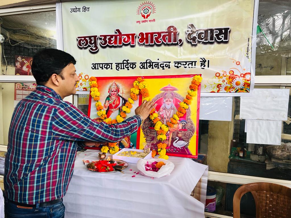 आज श्री विश्वकर्मा जयंती के उपलक्ष्य लघु उद्योग भारती देवास इकाई द्वारा सर्वप्रथम भारत माता और भगवान विश्वकर्मा की पूजा अर्चना की.