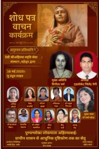 देवास। देवी श्री अहिल्या स्मृति सेवा संस्थान, महेश्वर के तत्वावधान में “अनुरनन प्रतिध्वनि” साहित्यिक आभासी मंच पर दिनांक 16 मई को संध्या 8 बजे एक गरिमामय शोध पत्र वाचन कार्यक्रम का आयोजन ऑन लाइन यूट्यूब पर किया गया। कार्यक्रम का मुख्य विषय रहा —