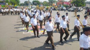 विजयादशमी पर देवास में राष्ट्रीय स्वयंसेवक संघ का विराट पथ संचलन