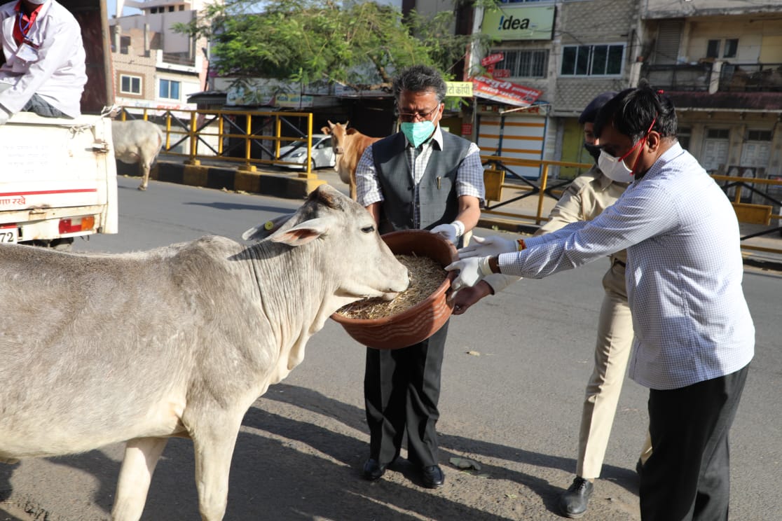 देवास 08 अप्रैल 2020/ जिले में कोरोना वायरस के संक्रमण के कारण लॉक डाउन की स्थिति में लोगों को आवश्यक वस्तुएं एवं सेवाएं उनके घर पर ही पहुंचाई जा रही है। ऐसी स्थिति में नगरीय क्षेत्र में निराश्रित गोवंश की भी जिला प्रशासन द्वारा चिंता की जा रही है। इसी को दृष्टिगत रखते हुए आज बुधवार को कलेक्टर डॉ श्रीकान्त पाण्डेय द्वारा देवास शहर के विभिन्न स्थानों पर चारा व भूसा वितरण की शुरुआत की गई तथा निराश्रित गोवंश को भूसा व चारा डाला गया ताकि कोई निराश्रित गोवंश भी ऐसी स्थिति में भूखा ना रहे।