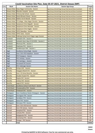 देवास मे कोविड-वैक्सीनेशन 05 जुलाई 2021 को 46 टीकाकरण सत्रो पर होगा वैक्सीनेशन