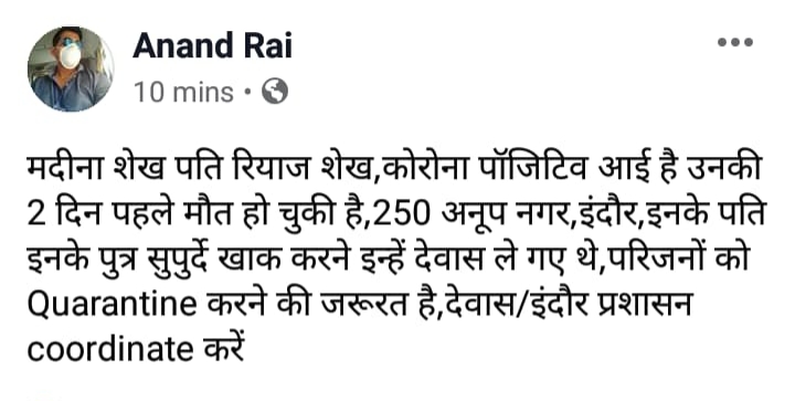 इंदौर के डॉक्टर की एक पोस्ट ने देवास को हिला दिया
