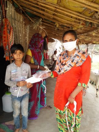 दुर्गावाहिनी की बहनो ने मास्क बनाकर वितरित किए