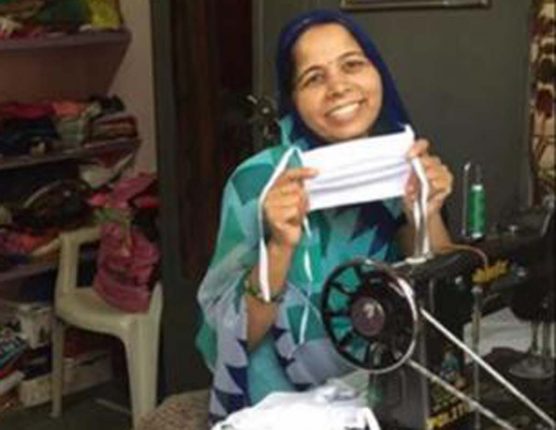 श्रीमती पवार घर पर मास्क बनाकर निःशुल्क वितरण करवा रही