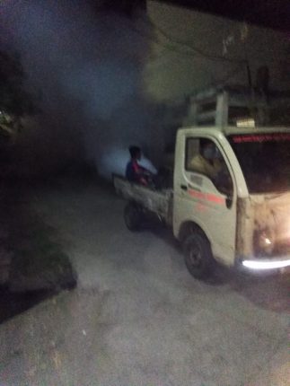 निगम टीम प्रतिदिन कर रही है शहर मे सेनेटाईजेशन, कीटनाशक दवाई का छिडकाव