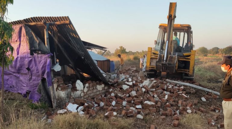 जिला प्रशासन, पुलिस प्रशासन एवं नगर निगम की संयुक्त टीम ने तिलक नगर देवास में अवैध रूप से निर्मित दो मकानो को तोडने की कार्रवाई की