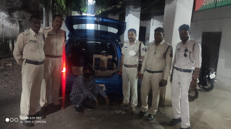 विदेशी मदिरा बरामद कर, एक आरोपी को किया गिरफ्तार, जप्त सामग्री 4 लाख 50 हजार रूपये