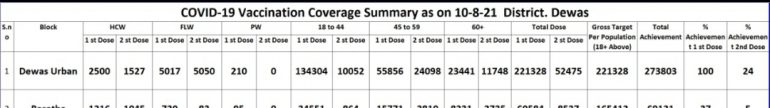 पूरे प्रदेश में टीकाकरण के प्रथम डोज में देवास निगम सीमा क्षेत्र प्रथम स्थान पर