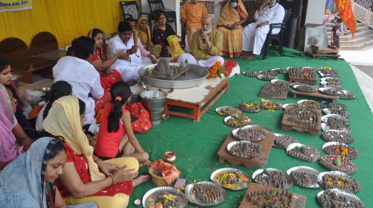 कैला देवी मंदिर पर 6400 पार्थिव शिवलिंग का निर्माण एवं पूजन संपन्न
