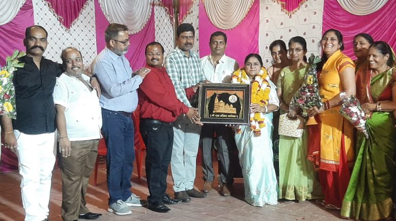 श्रीराम मंदिर का माडल फोटो भेंटकर शिक्षिका श्रीमती भारती को दी भावभीनी विदाई