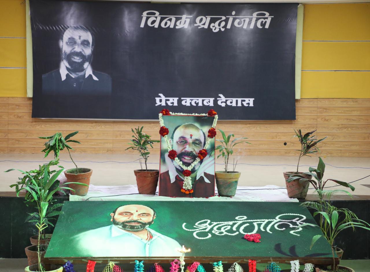 देवास। शहर के मल्हार स्मृति मंदिर सभाग्रह में प्रेस क्लब देवास द्वारा पूर्व प्रेस क्लब सचिव व श्रमजीवी पत्रकार संघ के संभागीय उपाध्यक्ष, वरिष्ठ पत्रकार हिमांशु राठौर (बाबा साहब) के निधन पर श्रद्धांजलि सभा का आयोजन किया गया। सभा मे उपस्थित विधायक गायत्री राजे पवार , विधायक आशीष शर्मा, (नीमच) विधायक दिलीप सिंह परिहार, पूर्व महापौर सुभाष शर्मा, भाजपा जिला अध्यक्ष राजीव खंडेलवाल, कांग्रेस शहर अध्यक्ष मनोज राजानी ,राष्ट्रीय कवि शशिकांत यादव, कलेक्टर चंद्रमौली शुक्ला,आयुक्त नगर निगम विशाल सिंह, अतिरिक्त पुलिस अधीक्षक जगदीश डावर,डीएसपी किरण शर्मा , प्रेस क्लब अध्यक्ष श्रीकांत उपाध्याय, उपाध्यक्ष अतुल बागलीकर, सचिव चेतन राठौड़, संयुक्त सचिव अशोक पटेल, कोषाध्यक्ष सिद्धार्थ मोदी व प्रेस क्लब के सदस्यगण, पत्रकारगणों, जनप्रतिनिधियो, अधिकारीयो व सामाजिक संस्था के उपस्थित सदस्यों द्वारा स्व राठौर के चित्र पर पुष्प अर्पित किए गए।सभा कक्ष में चित्रकार शादाब खान द्वारा रंगों (रंगोली)से स्व राठौर का चित्र बनाया गया। सभा मे उपस्थित लोगों द्वारा स्व राठौर को याद करते हुए स्व राठौर से जुड़ी अपनी यादों को सबके सामने रखा गया। पत्रकारिता क्षेत्र में स्व राठौर के योगदान को हमेशा याद किया गया वे सदैव हमारी यादों में रहेंगे। सभा मे स्व राठौर के परिजन भी उपस्थित थे। कार्यक्रम का संचालन अरविंद त्रिवेदी द्वारा किया गया।