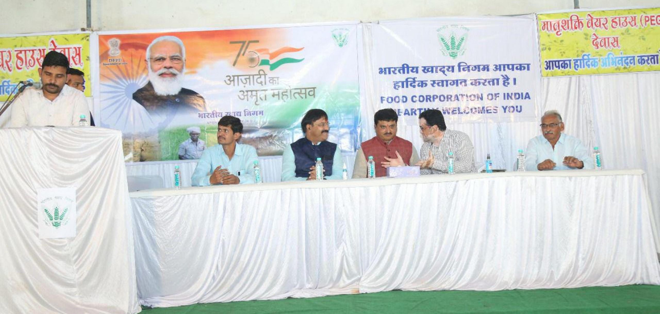 देवास। देश के प्रधानमंत्री मोदी के आव्हान पर आजादी की 75 वर्ष पूर्ण होने पर भारतीय खाद्य निगम, उज्जैन द्वारा मातृशक्ति/वेद वेयर हाउस राजोदा में अमृत महोत्सव मनाया गया। उक्त कार्यक्रम में मुख्य अतिथि हाटपिपलिया विधायक मनोज चौधरी ने केंद्र सरकार की कल्याणकारी योजनाओं के सफल क्रियान्वयन के लिए एफसीआई का आभार माना। आमजन को केंद्र की अन्य योजनाओं के लिए जागरूक किया। कार्यक्रम में पधारे विशेष अतिथि जिलाध्यक्ष राजीव खण्डेलवाल द्वारा कोरोना महामारी के दौरान केंद सरकार की प्रधानमंत्री गरीब कल्याण योजना के बारे में बताते हुए कहा कि मोदी जी की इस योजना का सफल क्रियान्वयन हेतु एफसीआई के साथ-साथ वेयर हाउस ने अपनी महत्वपूर्ण भूमिका अदा की हैं।