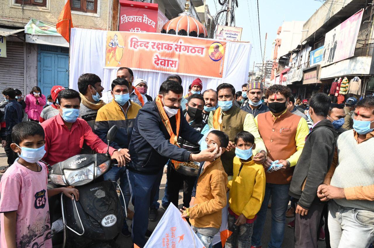 देवास। कोरोना एवं ओमिक्रॉन के बढ़ते प्रकोप की वजह से हर वर्ष मकर संक्रांति पर होने वाले सामाजिक व धार्मिक कार्यक्रम भी निरस्त हो गए। शहरभर में भी कई आयोजन होते हैं जो इस वर्ष नही हो पाए। हिन्द रक्षक संगठन ने अपनी वर्षो पुरानी परम्परा को कायम रखते हुए सांकेतिक रूप से मकर संक्रांति पर्व मनाया। संगठन जिला संयोजक मनीष सेन ने बताया कि कोरोना के बढ़ते संक्रमण को देखते हुए संगठन ने सांकेतिक रूप से पर्व मनाते हुए नावेल्टी चौराहा पर पतंग, तिल गुड़ के लड्डू और मास्क का वितरण किया। इस दौरान बड़ी संख्या में संगठन के पदाधिकारी व कार्यकर्ता उपस्थित थे।