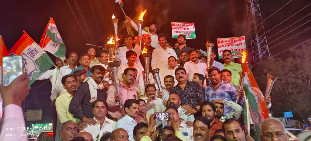 देवास/ आज ही के दिन 20 मार्च को प्रदेश के लोगों के द्वारा चुनी हुई कमलनाथ की सरकार को धनबल के सहारे गिरा दिया गया था। इसी को लेकर आज शहर जिला कांग्रेस अध्यक्ष मनोज राजानी व ग्रामीण अध्यक्ष अशोक पटेल के नेतृत्व में एक मशाल यात्रा तहसील चौराहे से पूर्व मंत्री विधायक सज्जन सिंह वर्मा की उपस्थिति में निकाली गई। विभिन्न मार्गों से होती हुई यात्रा डॉ भीमराव अंबेडकर की प्रतिमा पर संपन्न हुई।