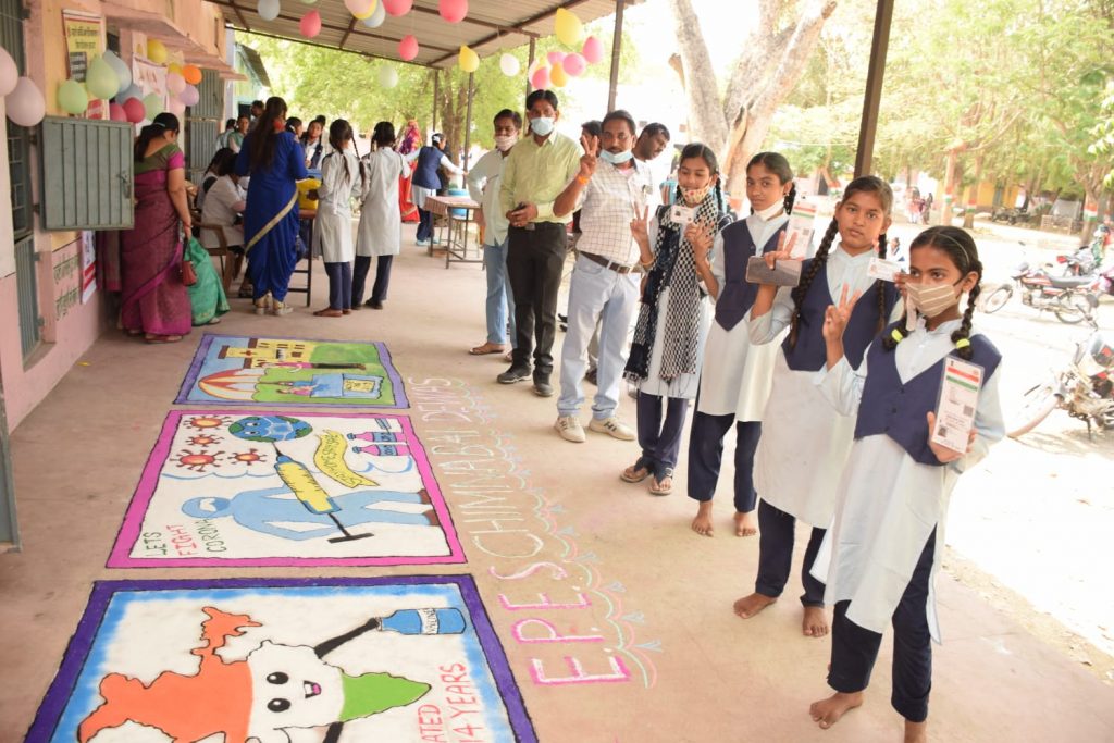 देवास 23 मार्च 2022/ जिले में कलेक्टर चन्द्रमौली शुक्ला के मार्गदर्शन वैक्सीनेशन कार्य किया जा रहा है। जिले में 12 से 14 वर्ष आयुवर्ग बालक/बालिकाओं का कोविड-19 वैक्सीनेशन अभियान आज 23 मार्च से प्रारम्भ हो गया है। जिले में पात्र 12 से 14 वर्ष आयुवर्ग बालक/बालिकाओं को वैक्सीन लगायी गई। अभियान का शुभारम्भ महारानी चिमनाबाई शासकीय कन्या मा.वि देवास में राजीव खंडेलवाल एवं क्षेत्रीय पार्षद श्रीमती पुर्णिमा खंडेलवाल ने किया। स्कूल की बालिका सना मिर्जा पिता आरिफ मिर्जा उम्र 13 वर्ष ने उत्साह पूर्वक पहला टीका लगवाया। इस अवसर पर मुख्य चिकित्सा एवं स्वास्थ्य अधिकारी डॉ. एमपी शर्मा, जिला टीकाकरण अधिकारी डॉ सुनील तिवारी, शहरी नोडल अधिकारी डॉ अजहर शैख, बीईई सुखदेव रावत, शाला के प्राचार्य दीपक शुक्ला सहित शिक्षक एवं शिक्षिका उपस्थिति रही। शाला परिसर को रंगोली एवं गुब्बारों से सजाया गया।