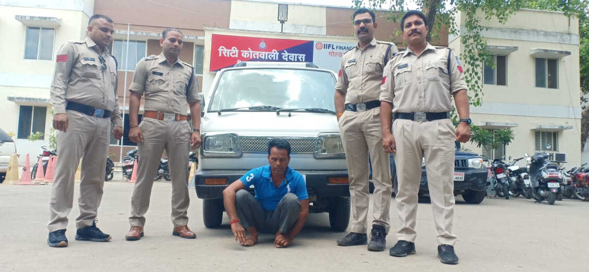 गिरफ्तार आरोपी का नाम :- नारायण पिता रामसिंह हाडा उम्र 45 साल निवासी हाल ईडब्ल्यूएस विकास नगर देवास स्थाई पता ग्राम मोरटा जिला शाजापुर सराहनीय कार्य : उक्त सराहनीय कार्य में थाना प्रभारी थाना कोतवाली निरीक्षक महेन्द्र सिंह परमार, उनि पवन यादव, प्र. आर सुनिल देथलिया, प्र. आर पवन पटेल का सराहनीय योगदान रहा।