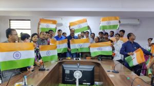 देवास 10 अगस्त 2022/ कलेक्टर श्री चंद्रमौली शुक्ला ने आज कलेक्टर कार्यालय के सभाकक्ष में पत्रकारों से “हर घर तिरंगा अभियान” एवं अन्य विषयों पर चर्चा की। इसके पश्चात पत्रकारों को तिरंगें झंडों का वितरण किया। उन्होंने कहा कि हमें आजादी का अमृत महोत्सव धूमधाम के साथ मनाना है और “हर घर तिरंगा अभियान” में सभी को अपने घरों, प्रतिष्ठानों एवं कार्यालयों पर तिरंगा फहराना और दूसरों को भी प्रेरित करना है। उन्होंने सभी से इसका व्यापक प्रचार-प्रसार करने का आग्रह किया। इस दौरान एडीएम महेंद्र सिंह कवचे, डीएसपी यातायात किरण शर्मा एवं सभी पत्रकारबंधु उपस्थित थे।