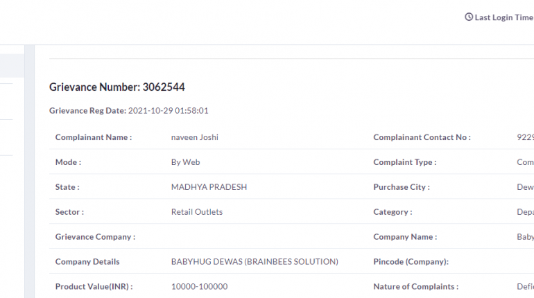 बेबीहग के देवास आउटलेट पर जमकर हंगामा हुआ। फरियादी नवीन जोशी के अनुसार उन्होंने बेबीहग के एबी रोड स्थित आउटलेट से एक प्रोडक्ट प्लेपैन ₹4395 में २४-१०-२०२१ को खरीदा घर जाकर उपयोग करने पर उन्हें वह प्रोडक्ट इंस्टॉलेशन काफी उलझा हुआ लगा तथा प्रोडक्ट में कुछ टेक्निकल मिस्टेक भी थी। जब अगले दिन उन्होंने बेबीहग […]