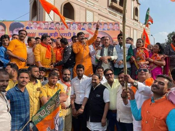 5 क्विंटल लड्डुओं का वितरण कर यूपी में भाजपा की जीत का मनाया जश्न